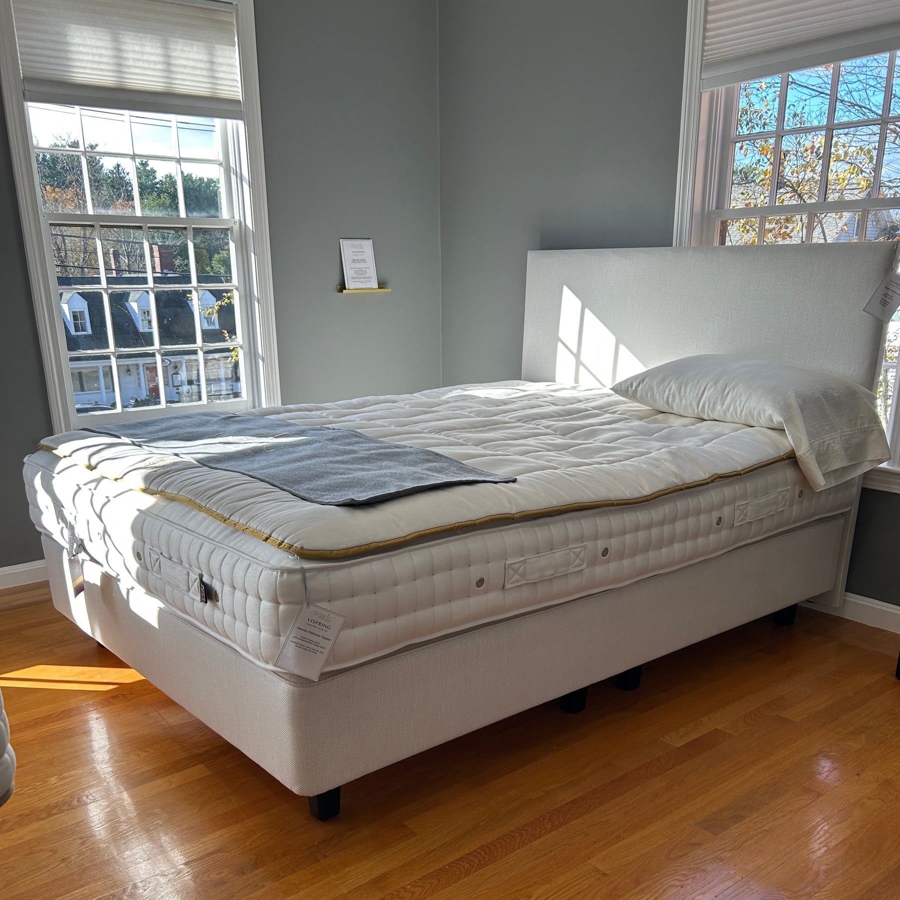 Please Note: This is a 4-month-old floor model in queen size, medium tension. Includes the coordinating 12.2" De Luxe Divan and Muses Headboard. Further pictures are available upon request.